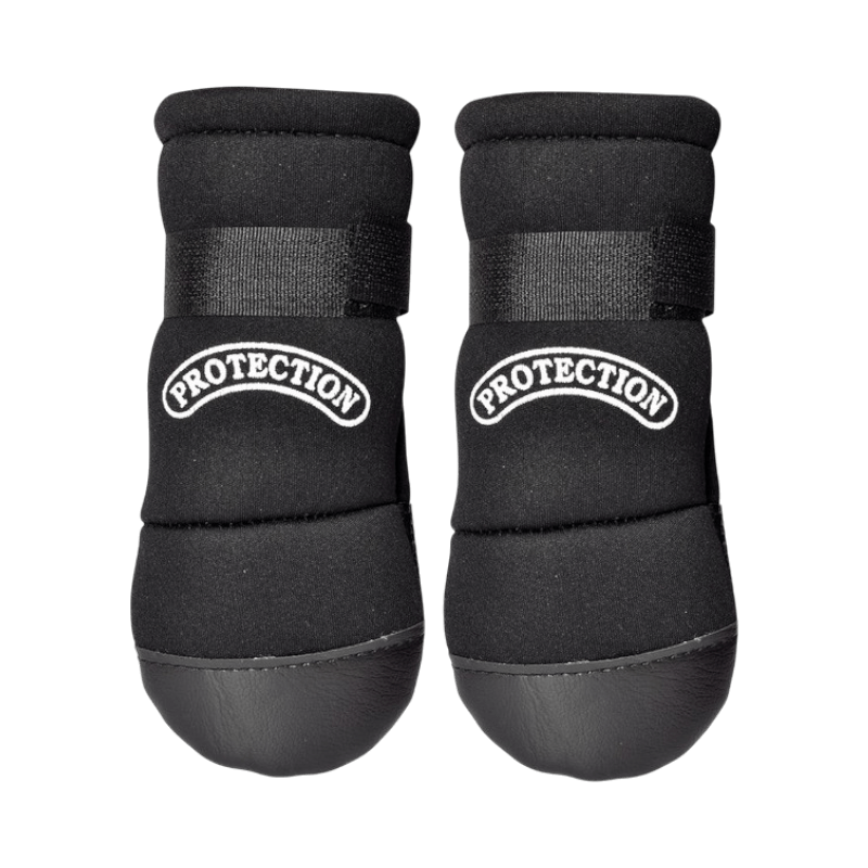 - Skydd mot vägsalt och kemikalier: Vägsalt och avisningsmedel kan orsaka irritation, sprickor och sår på tassarna. Hundskor fungerar som en barriär mot dessa ämnen.
