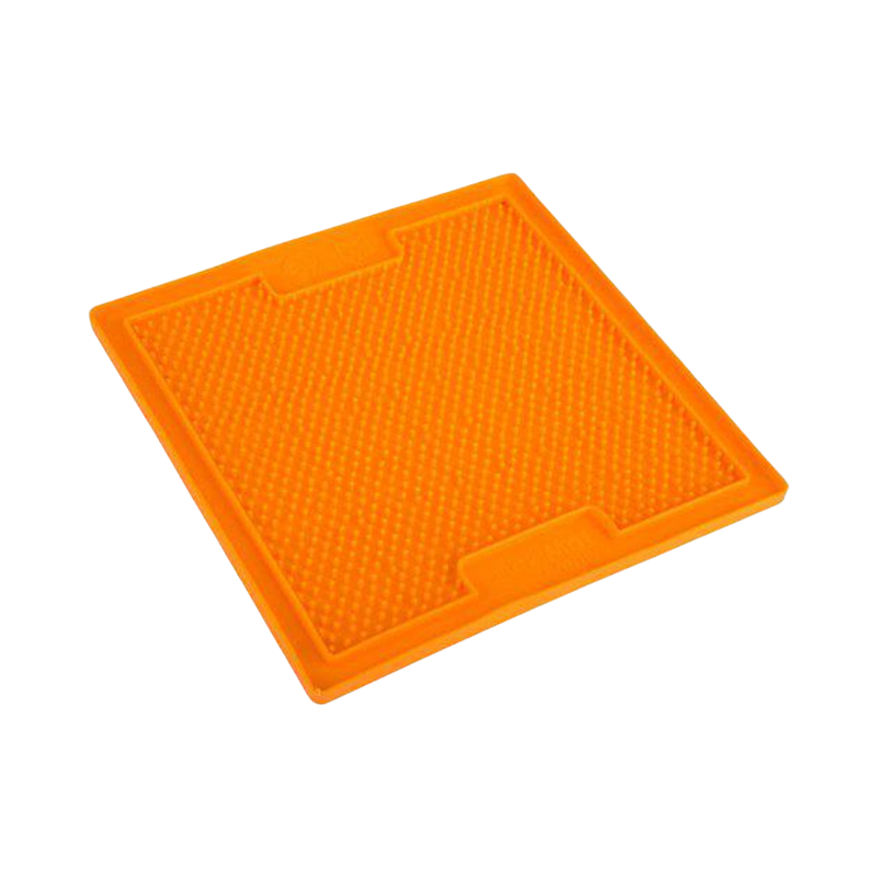 Fyrkantig orange slickmatta med kryssmönster för hundgodis och aktivering.