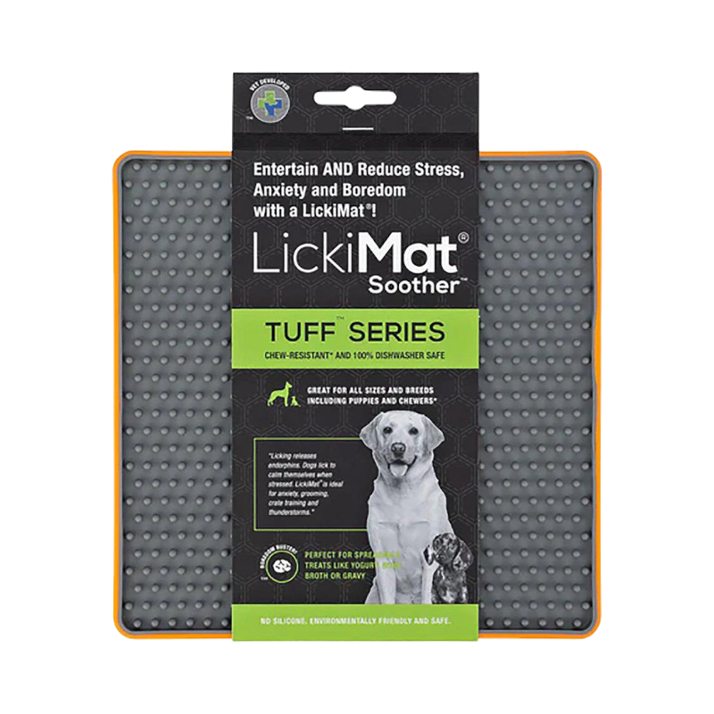 Soother Tuff är perfekt för hundar som annars förstör sina leksaker. Den används med våtfoder, färskfoder eller mjuka godispålägg som jordnötssmör. Genom att sprida ut maten i mattan tvingas hunden slicka långsamt, vilket minskar hetsätning och stimulerar produktion av saliv som kan bidra till bättre matsmältning. Den fungerar även som ett avledande verktyg i stressande situationer, exempelvis när hunden ska bada eller vara ensam hemma.